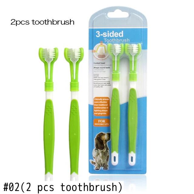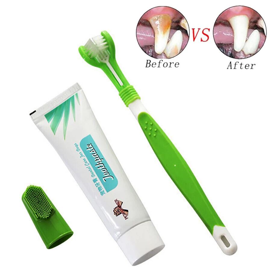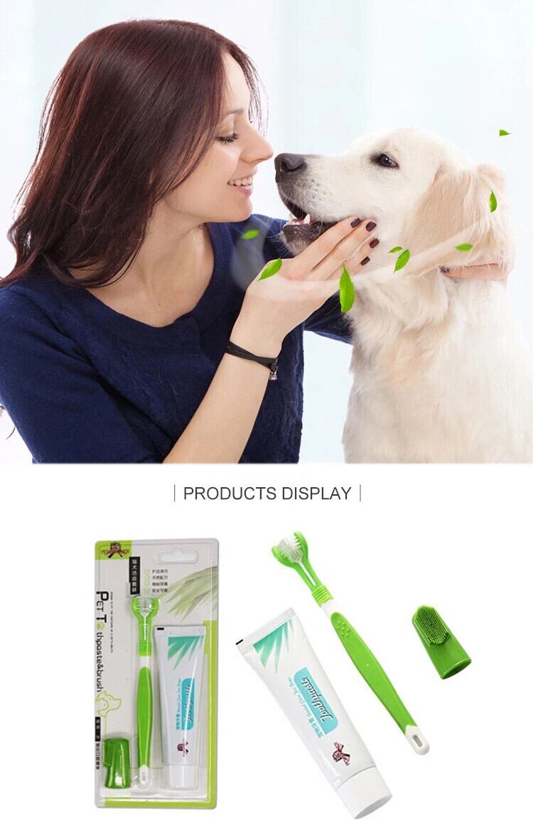 送料無料 ペット ペット歯ブラシキット三面犬ブラシ歯磨き粉添加口臭歯石歯ケア犬猫クリーニング口犬歯ブラシ AE12188854736157109
