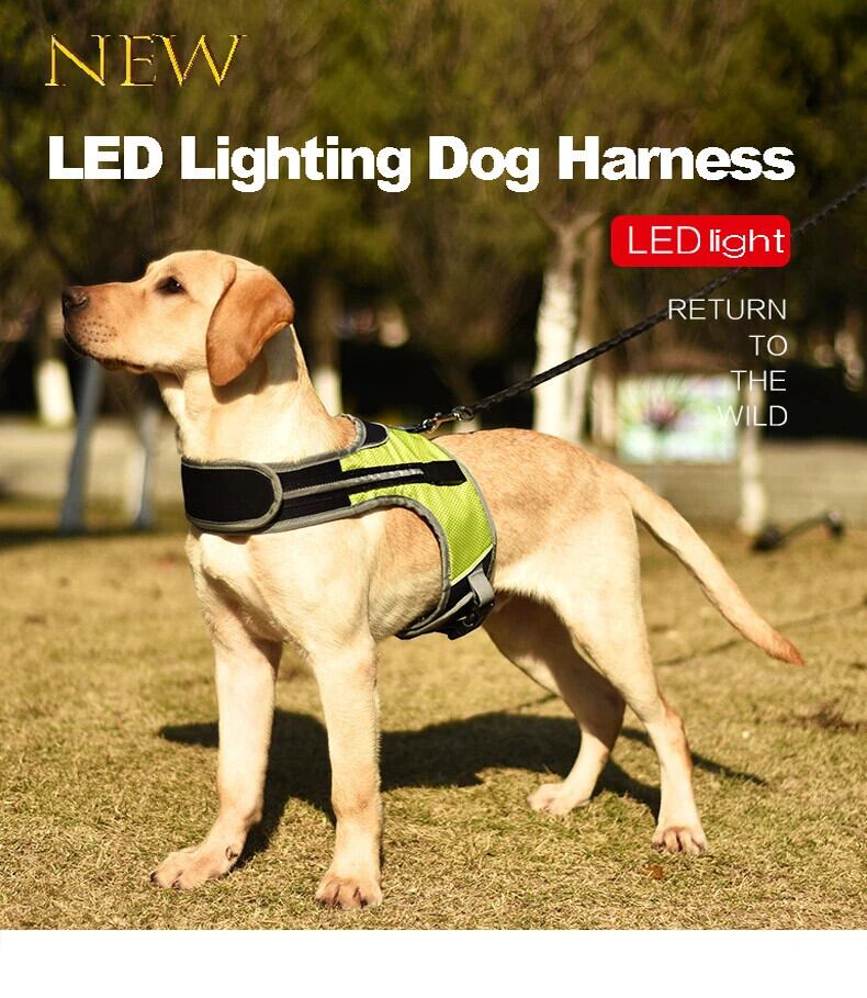送料無料 ペット LED 発光犬ハーネスライトアップ犬チェストストラップベストペット安全反射ハーネス首輪ペットベストハスキー羊飼いラブラドール ベルト AE1218884909436334