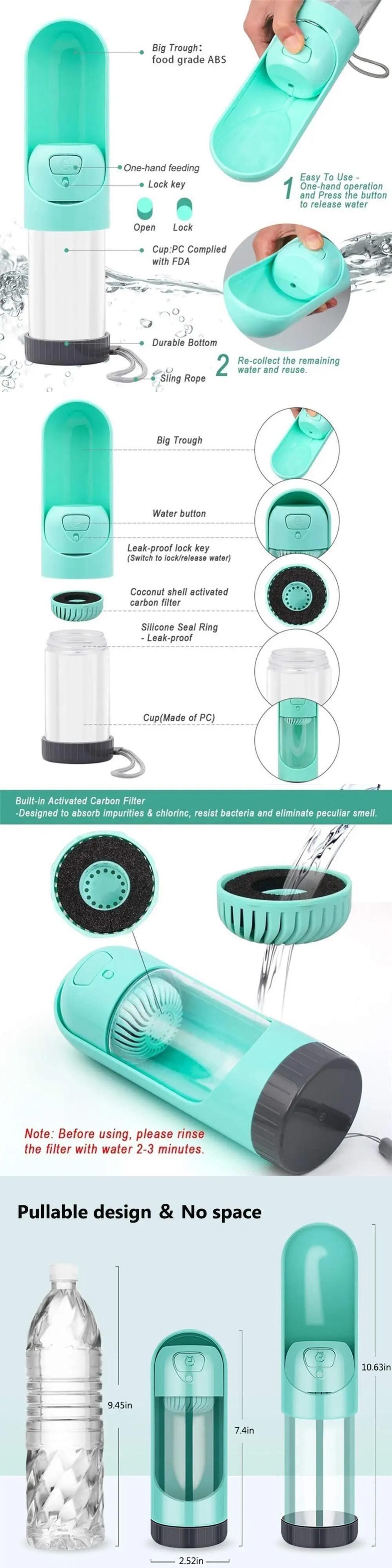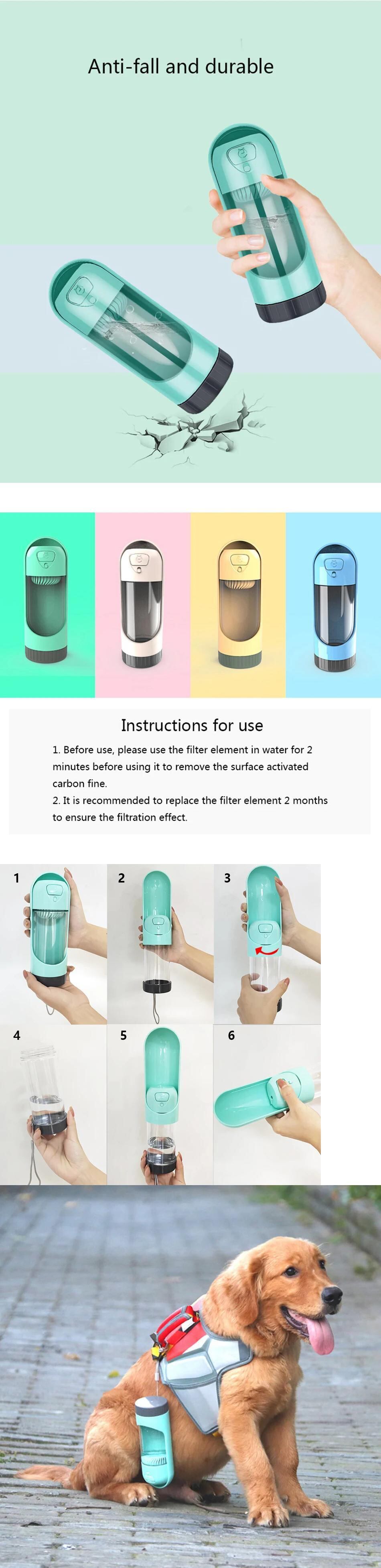 送料無料 ペット ポータブルペット犬水ボトルフィルター飲料ボウル犬猫給餌水ディスペンサーペット活性炭フィルターボウル リボン AE12188898265868453