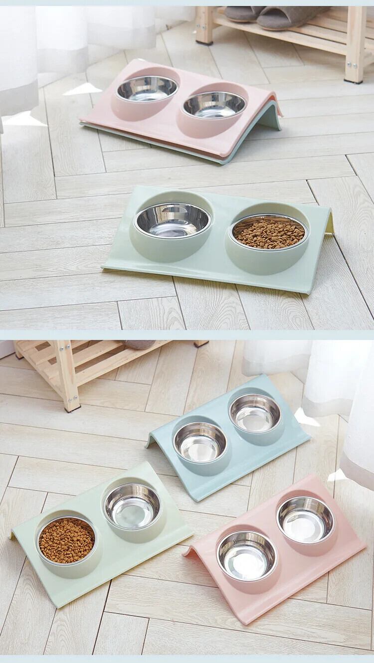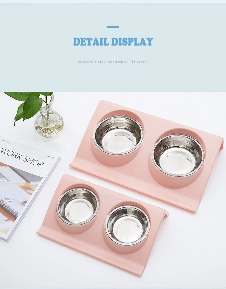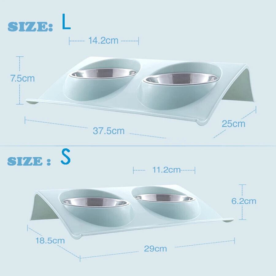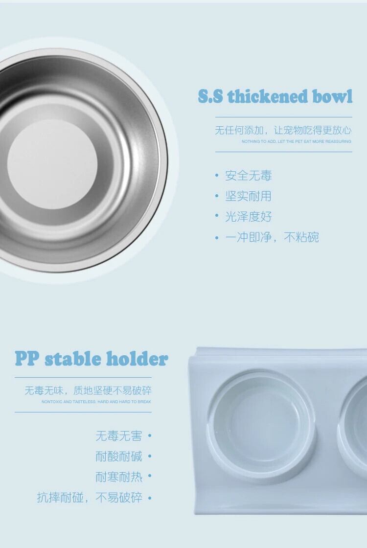 送料無料 ペット ダブルボウルペット犬猫給餌ステーションステンレス鋼水フードボウルフィーダーソリューション犬猫用品 リボン AE12188862359613564
