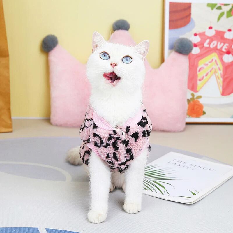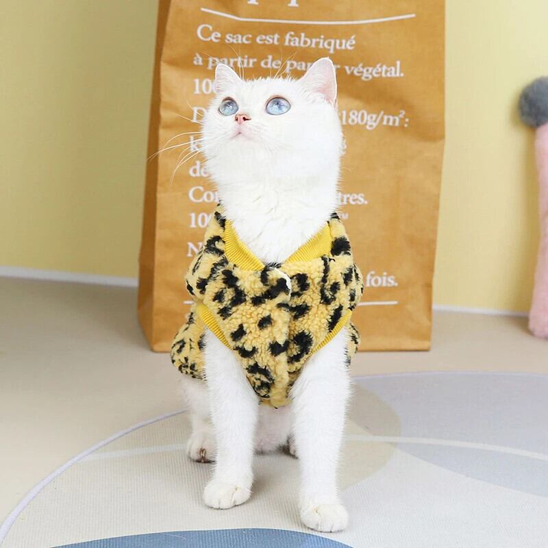 送料無料 ペット 2022 フリースペット猫服ヒョウ柄冬暖かいペットベスト子犬猫セーター犬服猫コートジャケットペットの衣装 ウィンター 冬物 AE12188894295843719
