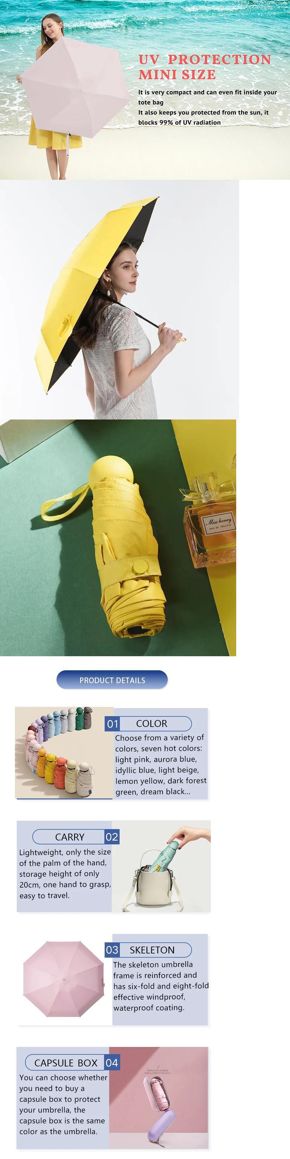 送料無料 ペット 8本骨日傘 ポータブル ミニ傘 日焼け止め カプセル傘 日傘 ボックス付き UV 折りたたみポケット傘 コンパクト AE12125556656537631341728