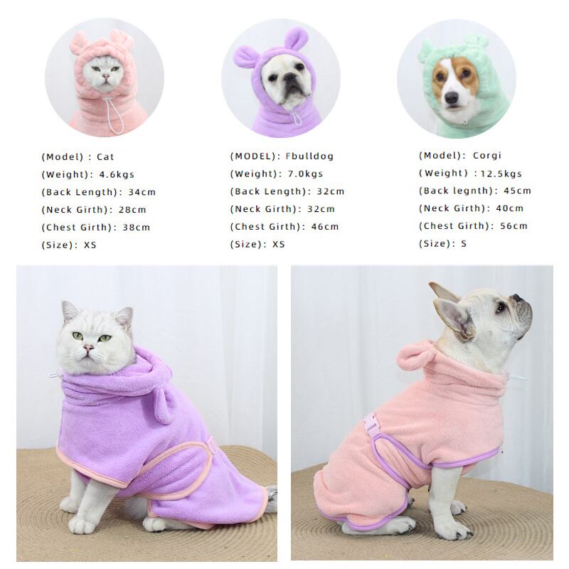 送料無料 ペット 速乾性フード付きバスローブ犬と猫、ペット乾燥コート服、柔らかいマイクロファイバービーチタオル、超吸収性、速乾性 AE12125556656563456920108