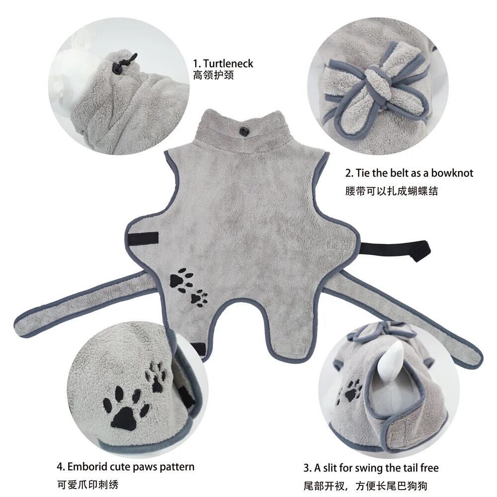 送料無料 ペット 調節可能なマイクロファイバーバスタオル犬、速乾性ソフトバスローブ、超強力な吸水性、小型、中型、大型犬、猫 アジャスタブル AE12125556656563749886126