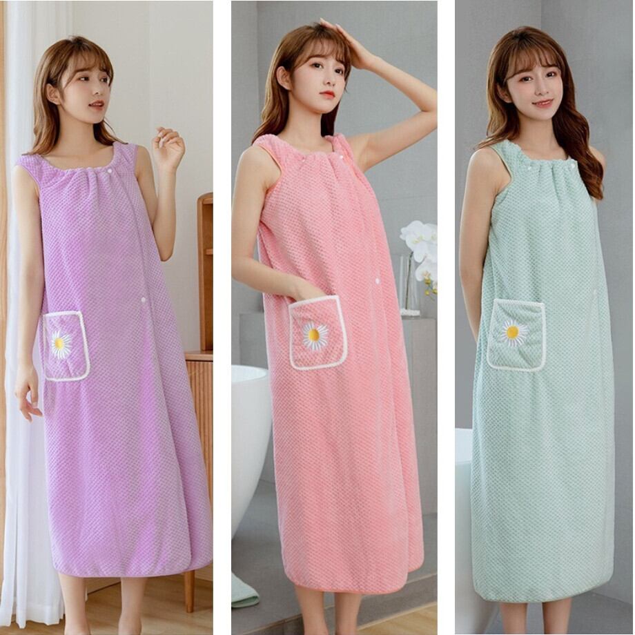送料無料 ペット ウェアラブルバスローブピンク大人の吸水性純綿速乾性ヘアスカートロング浴室洗える女性のバスタオル 2023 コットン ピュア AE12125556656589666470424