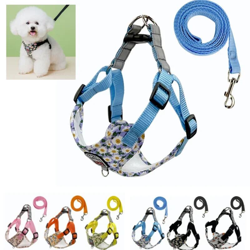 送料無料 ペット 反射安全ペット犬ハーネスとリーシュセット、適切な小型中型犬と猫のハーネスベスト子犬胸ストラップ ベルト AE121255533367257227639