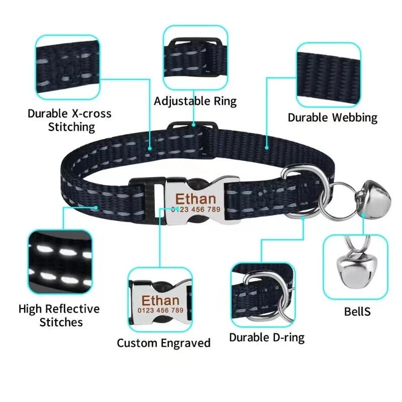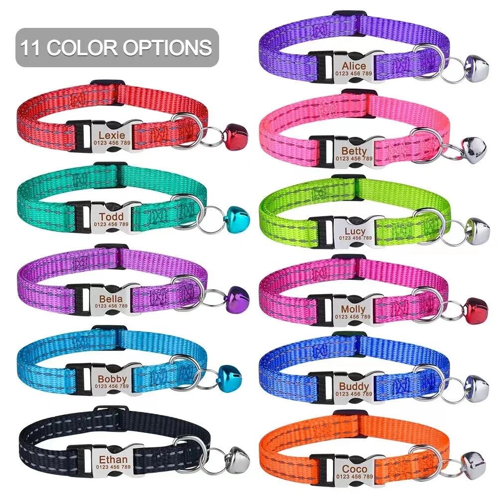 送料無料 ペット パーソナライズされた猫の首輪反射ナイロン犬と猫の ID 首輪、適切な猫と犬のチワワ AE121255533382648425566