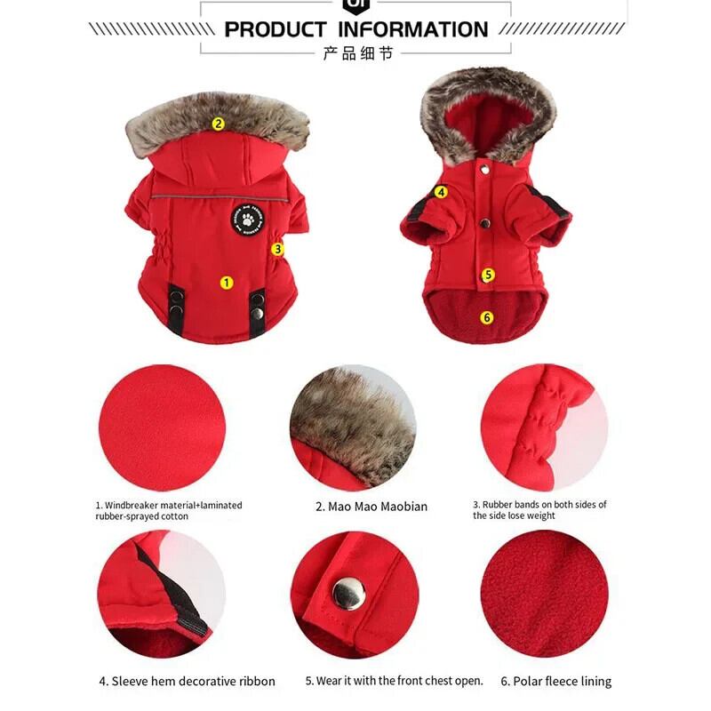送料無料 ペット 胸部バック小型犬服ポケット付きジッパージャケット屋外保護と暖かさ犬冬ペット用品 レッド ウィンター 冬物 AE121255566587968239195
