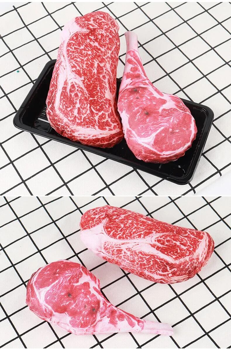 送料無料 ペット ペットのおもちゃ Oxd 布 + PP 綿模擬ステーキスクイーズおもちゃビッグステーキサウンド噛みつきにくいトレーニング小道具 コットン 人工 AE121255566533642188759